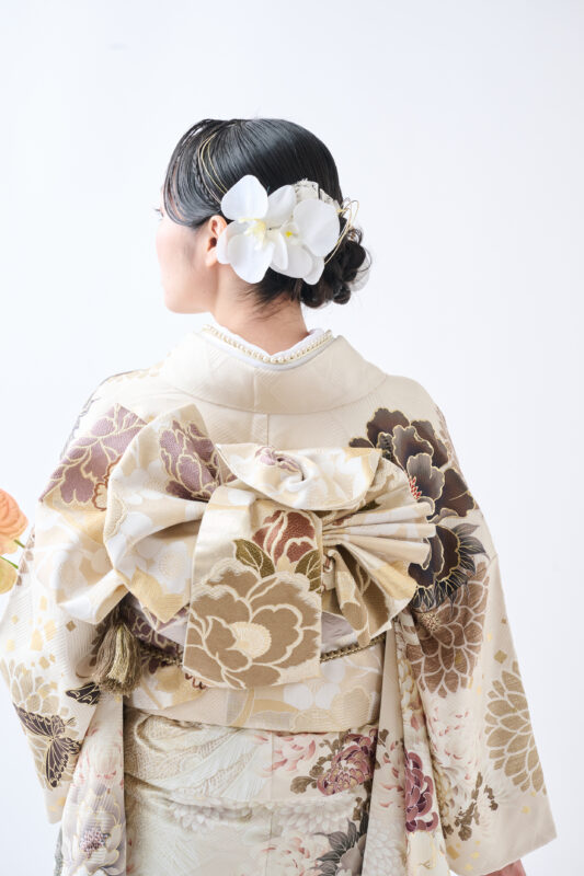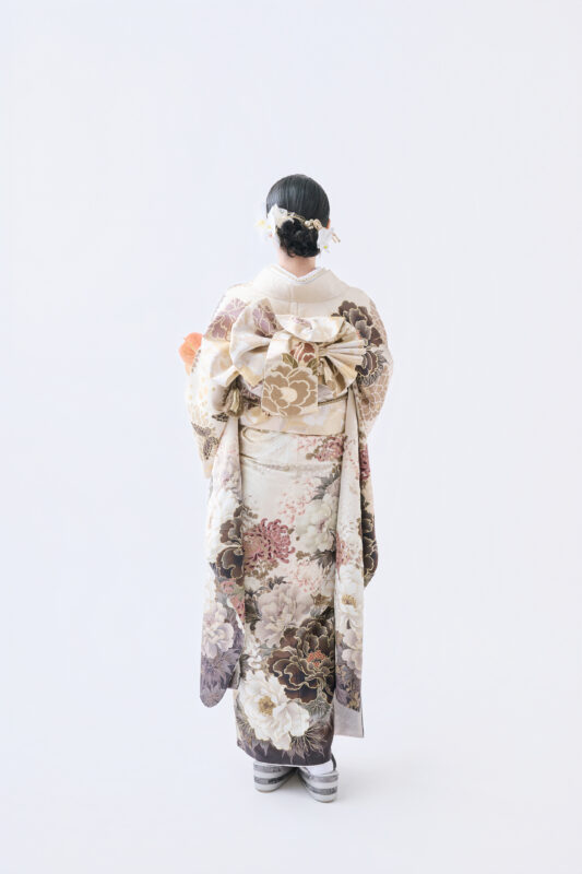 アイボリーの地にブラウントーンの目を惹くデザイン。