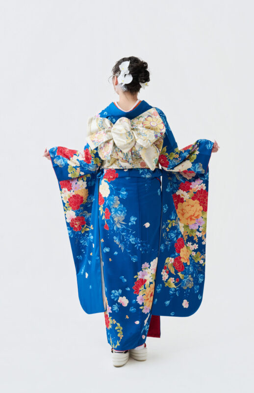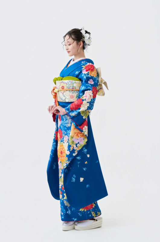 彩り豊かな花柄を贅沢にあしらった華やかな振袖。